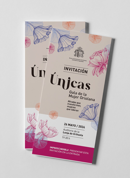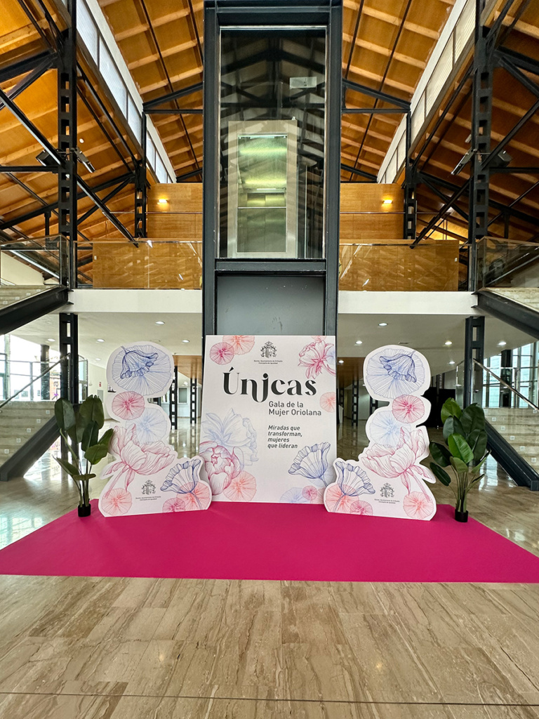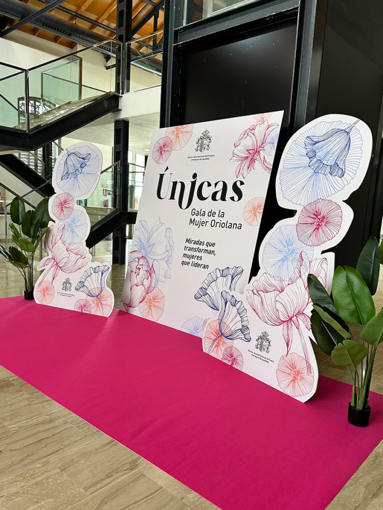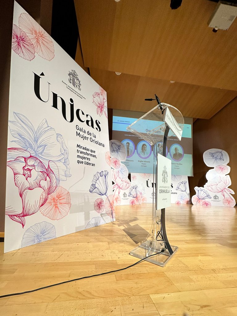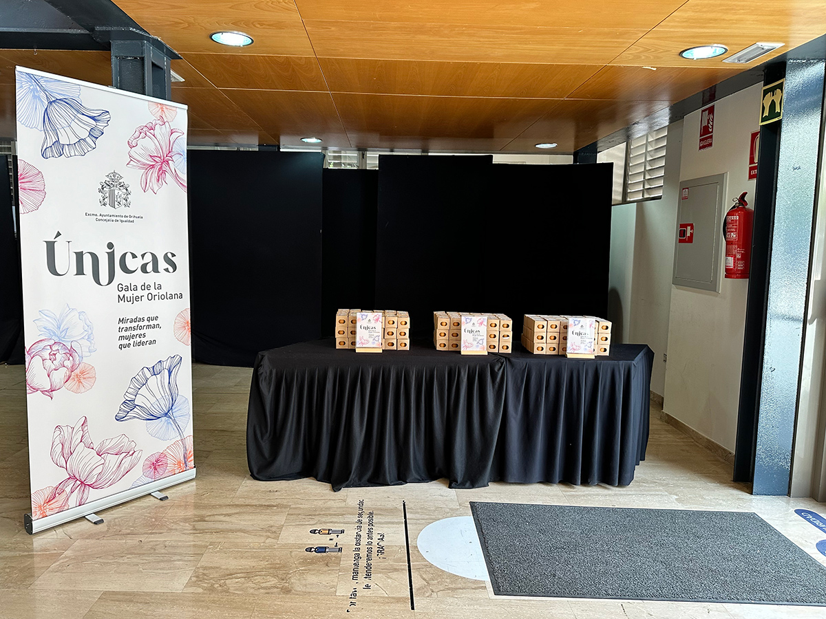 Tareas desarrolladas: Diseño y conceptualización del evento global, diseño, producción y montaje de escenografía y elementos de decoración de todos los espacios (señalética, photocall…). Diseño y producción de regalo para las galardonadas, diseño y producción de obsequio para las personas asistentes así como de las invitaciones. Diseño de post para redes sociales. Elaboración del guión del acto, creación de cuña publicitaria y contratación de su emisión en diferentes emisoras locales. Elaboración de vídeos de cada una de las mujeres galardonadas en diferentes localizaciones de la Ciudad de Orihuela (incluidas imágenes aéreas). Gestión integral del evento con contratación y supervisión de personal de apoyo, especialistas en imagen, iluminación y sonido, maestra de ceremonias, fotógrafo, catering…